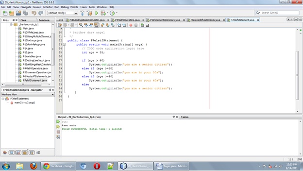 Pada program diatas, kita menggunakan 2 kelas yaitu StudentInfo yang berisi variabel dan method siswa dan kelas StudentDetails yang berisi inisialisasi variabel dan pemanggilan fungsi printDetails, dengan terlebih dahulu membuat objek dengan nama student. Perlu diperhatikan di sini, ketika anda akan menyimpan nama sebuah file, maka wajib berikan nama file dari kelas yang ada fungsi main. Dari contoh diatas , kelas yang mempunyai fungsi main ialah kelas StudentDetails, oleh karena itu nama file yang tepat ialah StudentDetails.java.